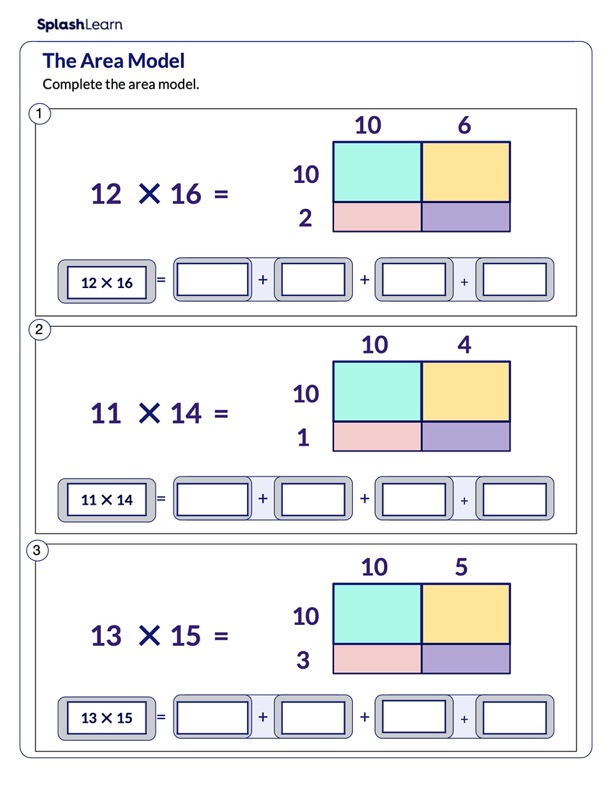 The best source for free multiplication worksheets. Kindergarten, 1st grade, 2nd grade, 3rd . Free 4th grade math worksheets multiplying 3 and 4 digit numbers. Includes directions on how to do area . The area model method is based on the simple equation used to find the area of a rectangle: